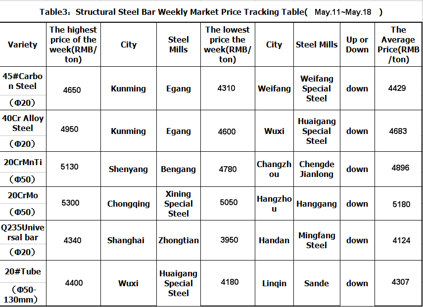 1.Price Tracking of Structural Steel Bar in a Week(unit: RMB yuan/ ton)