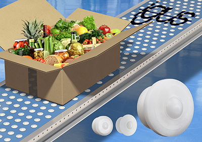 The advanced and lubrication-free polymer ball transfer units from igus ensure the safe transport of sensitive goods such as food. (Source: igus GmbH)
