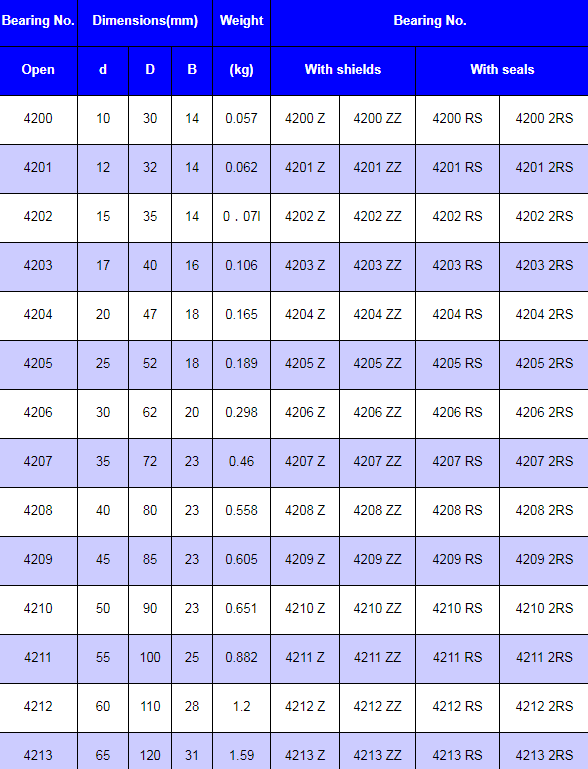 XMLZ 4200 series, 4300 series Double Row Ball Bearing