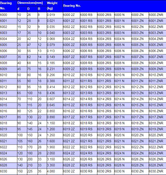 XMLZ Spplies 6000 Series Deep Groove Ball Bearing