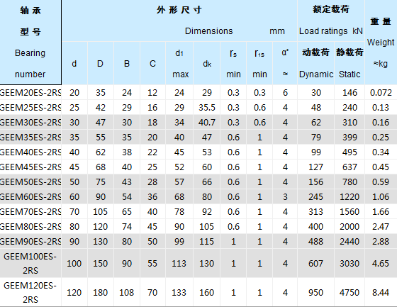 GEEM...ES-2RS Lubricated Radial Spherical Plain Bearings