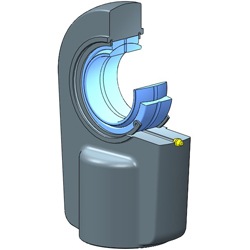 Rod end with locking slot is made up of a rod end and a radial spherical plain bearing of series GE…ES,fixed in housing by snap rings,rod end of carbon steel (d<60); carbon steel or spheroidal graphite cast iron (60≤d≤90); spheroidal graphite cast iron (d>90). Thread can be closed because shank is slotted,thread clamping by two hexagon socket screws of series SIR…ES;without socket screw of SIRN…ES; All can be relubricated via a nipple.