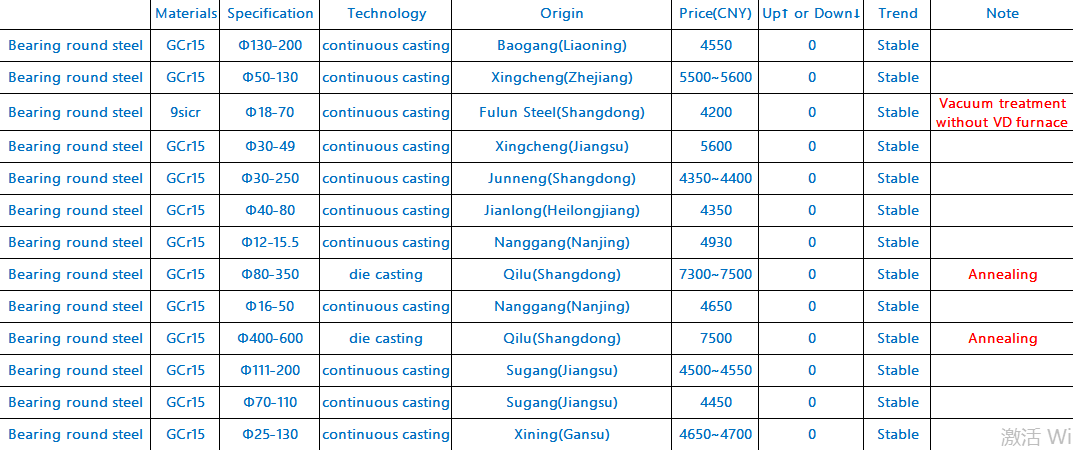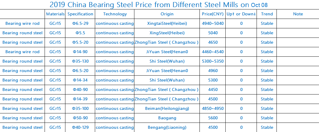2019 China Bearing Steel Price from different steel mills on Oct 08