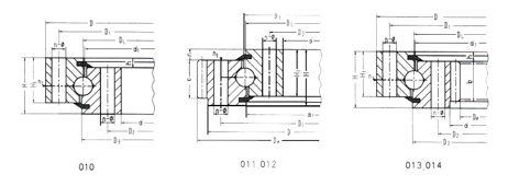 Slewing bearings are ball or cylindrical roller bearings which can accomodate axial, radial and moment loads acting either singly or in combination and in any direction. They are not mounted on a shaft and in a housing; the rings, which are simply bolted on the seat surface are available in one of three executions。