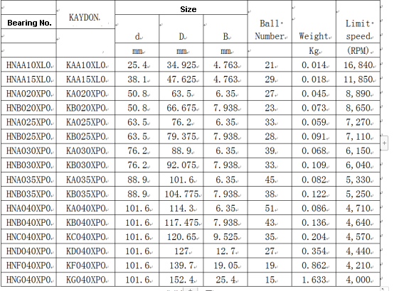 The following are the specific models, sizes and specifications of VISTA large thin section ball bearings to replace KAYDON bearings: