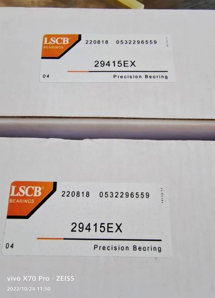 29415EX is a tapered roller bearing with an inner diameter of 75mm, an outer diameter of 160mm, a thickness of 51mm, and a weight of 4,76kg. The material is stainless bearing steel AISI440 (9Cr18). The cage and material are F1 carbon steel. The number of rows is single. The thrust roller bearing is used to bear the combined axial and radial loads dominated by axial load, but the radial load shall not exceed 55% of the axial load. Compared with other thrust roller bearings, this kind of bearing has lower friction coefficient, higher rotating speed and self-aligning performance. Thrust cylindrical roller bearings and thrust tapered roller bearings are applicable to the situation of low speed. The speed of thrust tapered roller bearings is slightly higher than that of thrust cylindrical roller bearings.