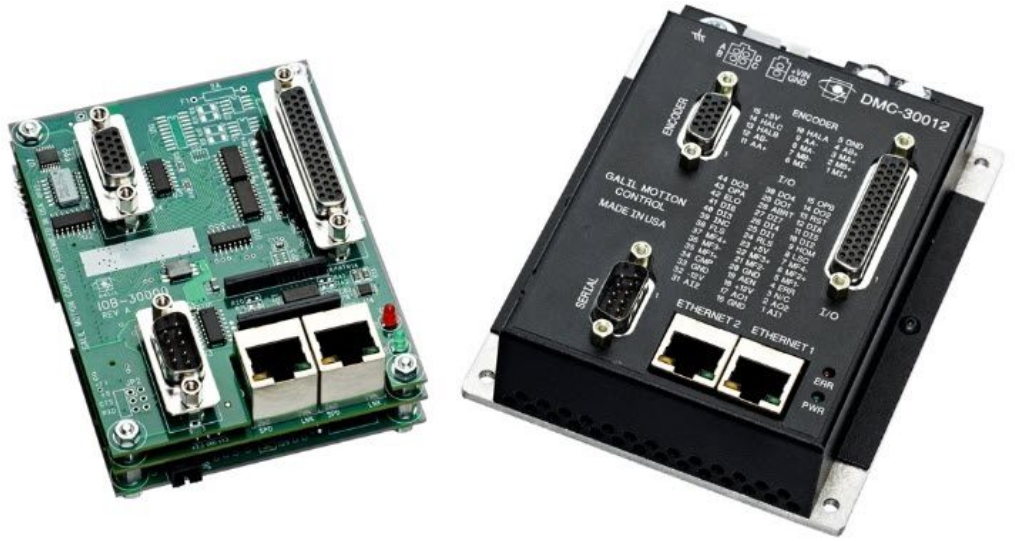 The DMC-3x01x Motion Controller Series is Galil's latest generation single-axis motion controller. It uses a 32-bit RISC processor to provide higher speed than older models. Like all Galil controllers, programming the DMC-3x01x is simplified with two-letter, intuitive commands and a full set of software tools for servo tuning and analysis.