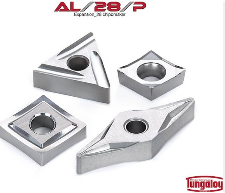Tungaloy enhanced its uncoated cemented carbide insert line for non-ferrous applications by adding 13 new inserts with the -28 chipbreaker.