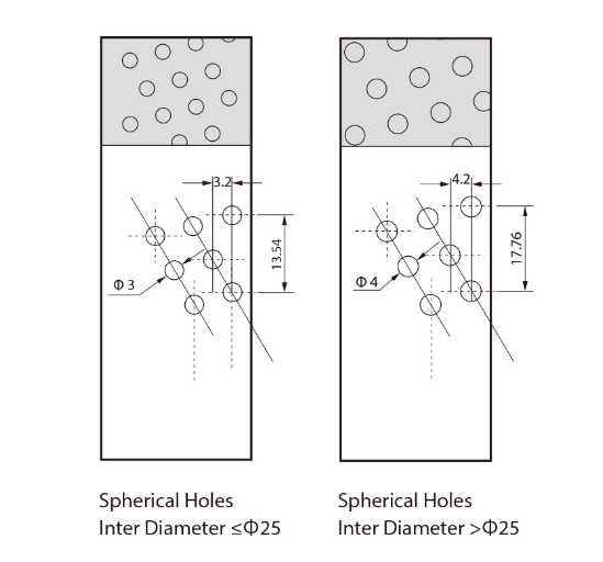 E92 is deriving from E90; the difference between E90 & E92 is Indentations on working surface, which substituted by throughholes. Theses holes will allow greater capacity to collect lubricant, which build up a lubrication film at the start of movement and reduce the frication. It is suitable for high load, lower speed application like construction, transport, and agriculture machinery.