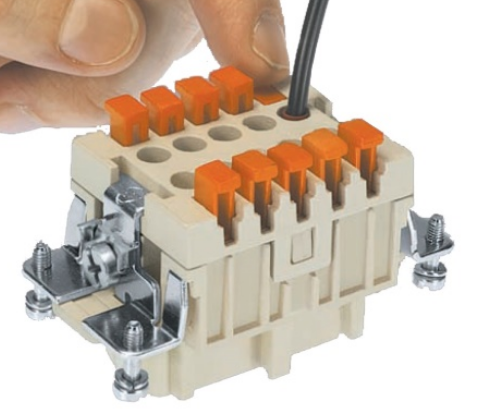 ILME SQUICH push-down inserts have easy quick-connect solutions for industrial machinery in rugged industrial environments. SQUICH push-down technology allows for no tool to install solid and or stranded wires (up to 14AWG) to the contacts in the connector.