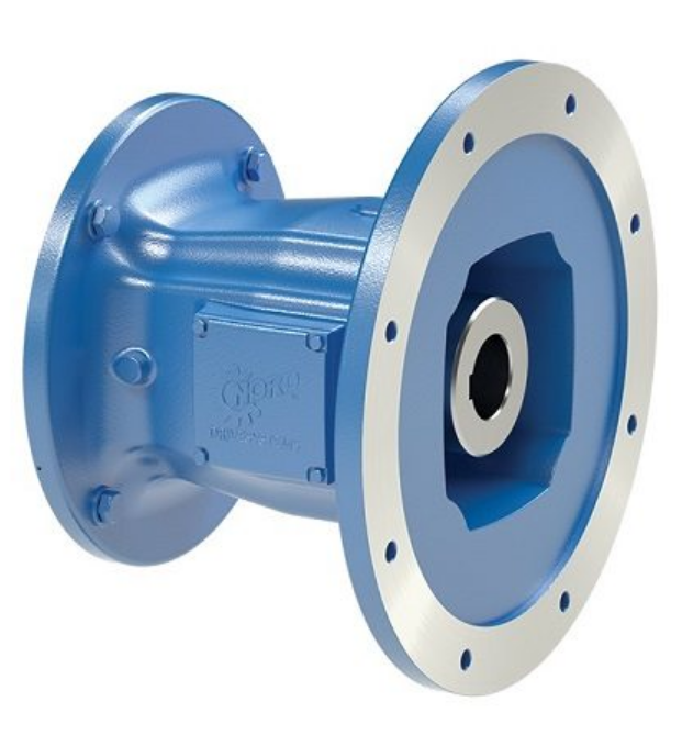 Nord's redesigned NEMA and IEC adapters are made of cast-iron and consist of a single casting that eliminates the need for adapter plates. This manufacturing process reduces the total number of parts that need to be stocked, resulting in a lower sell price and providing better overall value. The improved housing also results in a significant reduction in heat generation, nearly -20 K less temperature rise compared to the legacy version. The adapters come standard with a fail-safe Rotex coupling and are designed for easy integration of backstops and speed sensors to meet application needs. To support commissioning and service, an inspection cover was added for quick feedback on engagement and spider condition. Permalubricators and grease drain cups will no longer be needed as the new adapters come prepared with lifetime grease as well as provisions for re-greasing if necessary, adding to the low maintenance advantages these NEMA and IEC adapters provide.