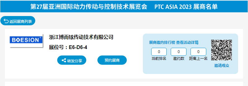 PTC ASIA 2023:ZHE JIANG BOESION PT TECH CO., LTD sincerely invites you to visit E6-D6-4