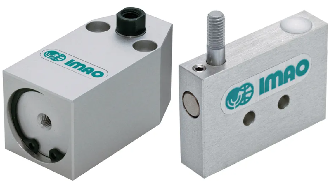 In both versions, the spring-loaded piston is compressed under the workpiece. After the workpiece is clamped, air is applied to lock into position. Release the air to unlock the piston. The piston is tapped to accommodate a work support tip. The bodies are made from anodized 5052A aluminum.