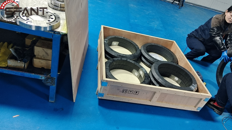 Yesterday, we sent 8 pieces of RU445G cross roller bearings to our loyal customer in Thailand. The bearings have an inner diameter of 350 millimeters, an outer diameter of 540 millimeters, and a height of 45 millimeters. Both the inner and outer rings have mounting holes for easy installation. Compared to YRT turntable bearings, they are cheaper and are one of our factory's main products.