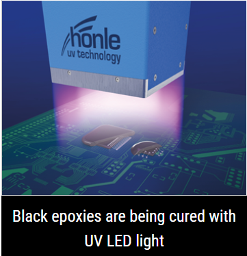 The black color in a conventional UV adhesive absorbs a high percentage of the UV curing energy. This means that the UV light energy required to fully polymerize an adhesive only penetrates a few micrometers. This phenomenon leads to the formation of a superficial “skin”, while the adhesive underneath remains uncured. The new black Vitralit BL UC adhesives from Panacol can be cured to greater than 1mm in thickness, purely with UV LED light. UV LED curing systems from Dr. Hönle are perfectly matched to the absorption wavelengths of the Black&Light technology, ensuring optimal curing of the black adhesives.