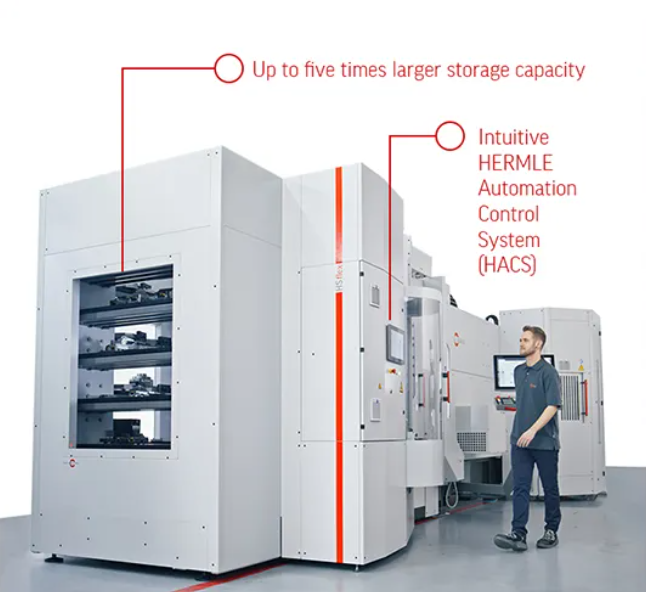 Welcome to the future of automated machining with HERMLE's new HS flex hybrid - your single source solution for fully automated pallet and vise handling.