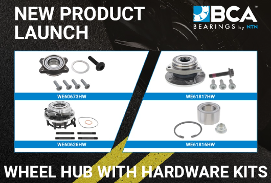 NTN, the parent company of BCA Bearings, has announced the launch of the BCA Wheel Hub with Hardware Kits product line. The initial launch of this new product line includes 27 new SKUs for popular import and domestic applications and represents coverage for over 16.3 million vehicles in operation. “Adding these new Wheel Hub with Hardware Kits to the BCA product line gives our customers the option of a premium, OE quality wheel hub that includes all of the professional grade hardware needed for a convenient installation,” said Matt Gorski, manager of product development. “Every wheel hub replacement is different, and some jobs require replacement of fasteners and other hardware to ensure a safe and reliable outcome. These kits make those jobs easy and efficient, and come with the same BCA quality our customers have come to rely on.” This all-new wheel hub with hardware kits includes a premium, OE quality wheel bearing packaged with the hardware required to install them. The hardware included varies by SKU, and includes hub mounting bolts/studs, axle/CV nuts, axle/CV bolts, axle/CV washers, snap rings/circlips, dust caps, grease seals, and O-rings. Applicable kits also include access to the BCA Bearings Torque Spec Lookup App, which allows installers to access torque specs and any special torque procedures for the proper installation of these products with a scan of a QR code.