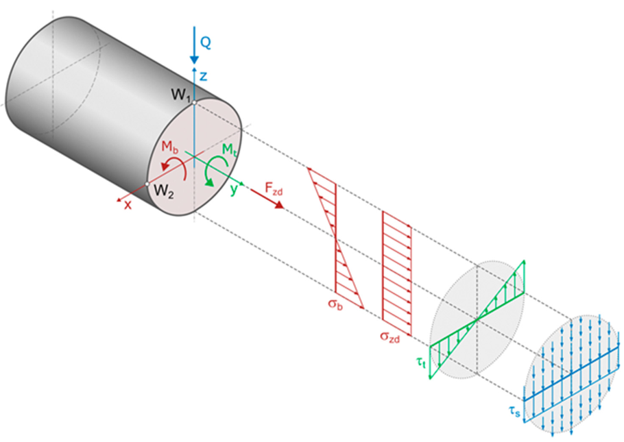 Note that in the shaft section, where bending and torsion stresses are combined, often the bending stress dominates, making the influence of torsion minimal. In such cases, assuming that torsion is pulsating is acceptable. The advantage of this simplification is that shaft and bearing calculations can use the same load spectrum (Type A according to Table 2).
