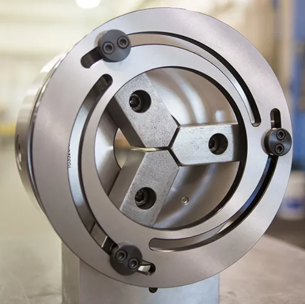 Dillon jaw forming rings lessen the amount of jaw stock removal required during parts set-up, thus maximizing jaw life for cutting and forming operations – and they are now available in diameters up to 21-inches. They provide a more uniform grip on the workpiece and mount in direct contact with the top jaw to preload the chucking system. Jaws can be more precisely machined to provide a firmer grip on the workpiece. Self-centering jaw forming rings attach to the front of jaws without tools, so installation is fast and simple, and set-up times are slashed. Use of this device will provide a jaw surface true to the machine centerline, reduce set-up times, and increase up-times for running machined parts. They provide uniform pressure on jaws for a more consistent bore on large diameter chucks. They compensate for “jaw lift” even in worn chucks, which yields better part concentricity. Ideal wherever soft jaws, round jaws, and full-grip jaws are used. Chuck-diameter-specific versions, and adjustable boring rings are available from 6-21-inches in diameter. Both styles feature no-tools attachment. Dillon jaw forming rings are a high-quality product which will ensure years of quick, stress-free set-ups when paired with Dillon jaws.