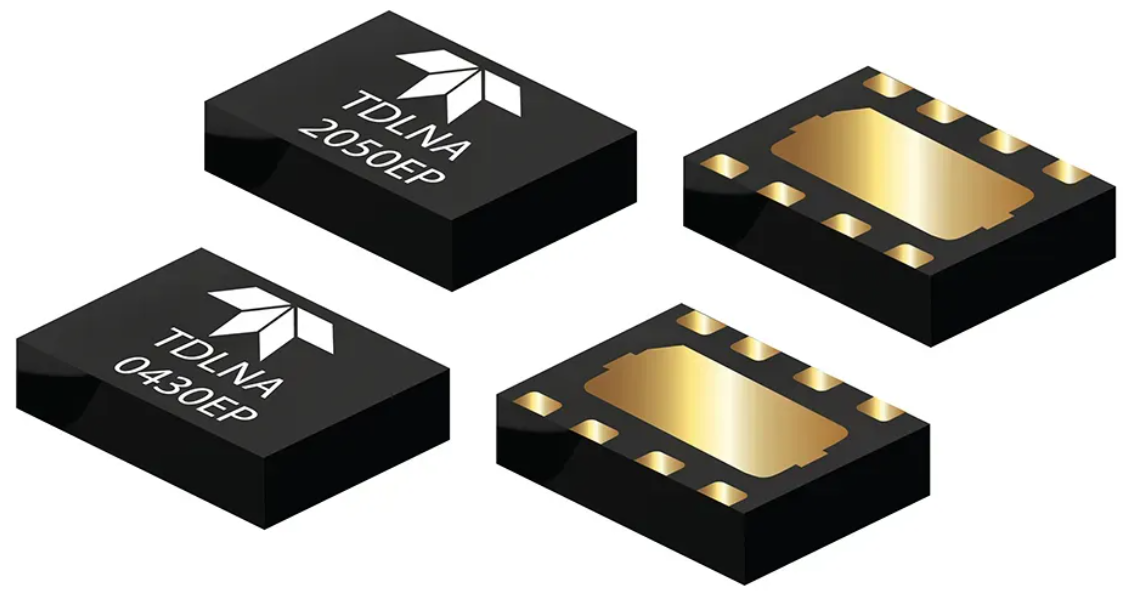 The TDLNA0430EP amplifier is ideal for VHF to S-band communications and delivers a gain of 21.5dB from 0.03GHz to 3GHz, while maintaining a noise figure of less than 0.35dB and an output power (P1dB) of 18.5dBm and should be biased at the same VDD of +5.0 volts and IDDQ of 60mA.