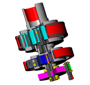 For the verification of the shafts, a specific analysis of the number of cycles with bigger amplitudes is recommended. The torque variation (Figure 8) of the time series is generally low, very few times does a change from high to small torque occur. This is also evident in the resume of events shown by the rainflow half-matrix (Figure 10). Therefore, the shaft is not submitted to many significant torsional stress amplitudes. If, as discussed earlier, the torsional stress was assumed to be pulsating, then the resulting safety would be lower. The use of a rainflow analysis provides a more precise result. The obtained load spectrum is then applied at the input coupling and used for all shaft verifications. For proper verification, critical sections should be designated in every shaft of the gearbox (at positions with shaft shoulders, keyways, etc.) (see Figure 11). The verification is performed for all sections, and the most critical will be found. In the result overview (Figure 12) for every shaft the static and fatigue strength safety in the most critical section is displayed. This, combined with the bending and pitting safety factors for all gear pairs, provides a good overview of the main strength parameters of the wind turbine.