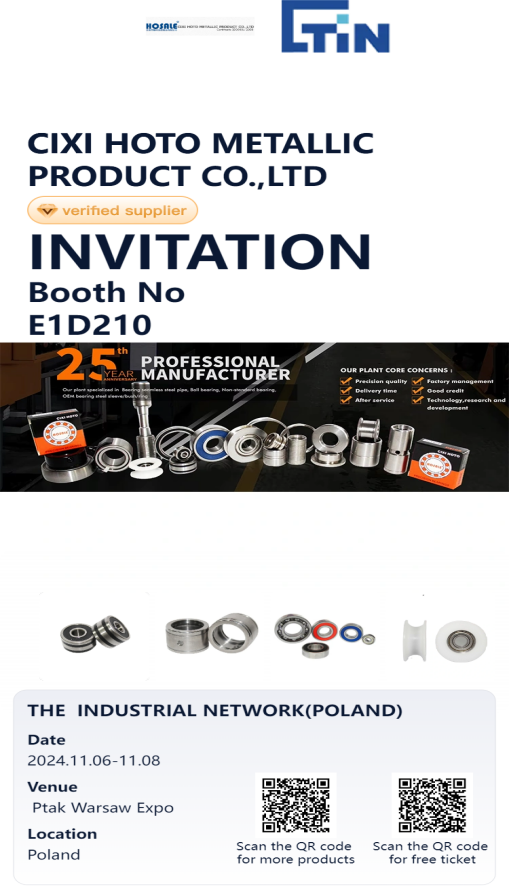 Recently, CIXI HOTO METALLIC PRODUCT CO., LTD (hereinafter referred to as CIXI HOTO),a manufacturer of ball bearing and bearing sleeves in China, officially announced an exciting news: the company will participate in the "POLAND industrial exhibtion" from November 6 to 8, 2024, Booth No:E1D210.