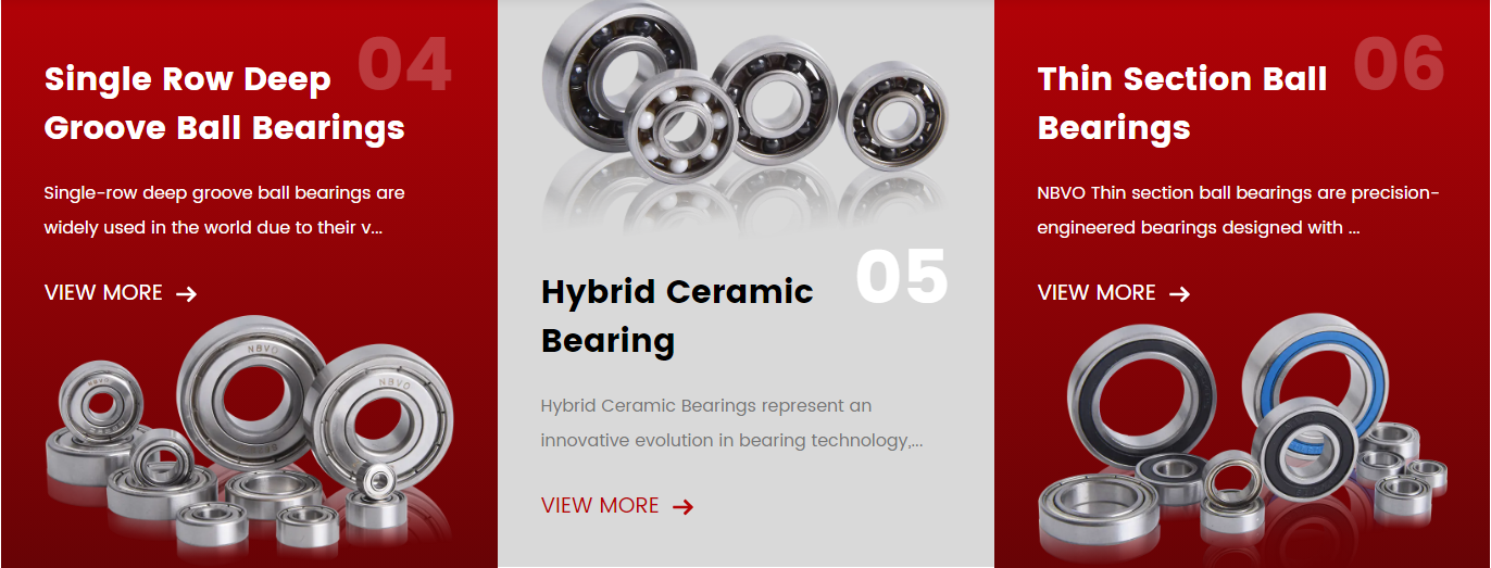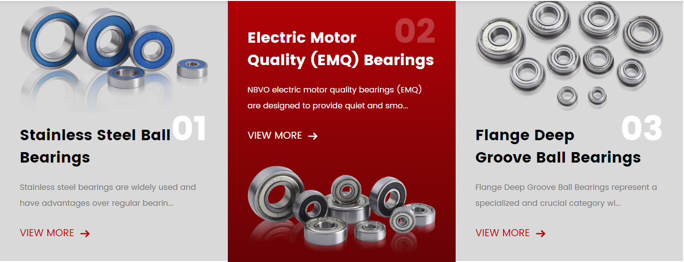 As a professional low noise, high precision deep groove ball bearing manufacturer, NBVO will focus on exhibiting Stainless Steel Ball Bearings, Electric Motor Quality (EMQ) Bearings, Flange Deep Groove Ball Bearings, Single Row Deep Groove Ball Bearings, Hybrid Ceramic Bearing, Thin Section Ball Bearings, etc. Providing effective solutions for industries such as Automobile Parts, Household Appliances, Fishing Gear, Medical Instruments, Finance, Chemical Machinery, food machinery, etc.