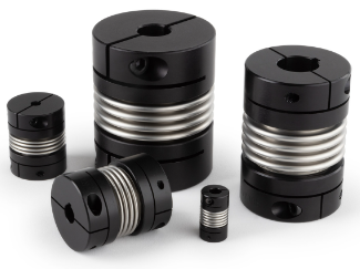 Ruland bellows couplings are ideal for precision motion in robotic applications due to their zero-backlash design, high torque and torsional stiffness, and various styles that ensure accurate movement and smooth operation. They are commonly used in industrial, medical, and autonomous robotic systems requiring high speed and accuracy. Ruland bellows couplings are designed for high-torque and zero-backlash applications, which are essential for robots requiring precision motion control. These couplings are lightweight, have low inertia, and can accommodate all forms of misalignment, making them highly versatile for different robotic applications. Designers benefit from using Ruland bellows couplings because they have reduced vibrations at speeds up to 10,000 rpm due to a balanced design. They are also available in standard lengths for increased torsional stiffness and extended lengths for increased misalignment capabilities. These options allow designers to use the bellows coupling that best fits their application. Ruland bellows couplings are available in clamp-style designs, with bore sizes ranging from 1/8 in (3 mm) to 1-3/4 in (45 mm). Hubs are manufactured from meticulously selected 2024 T-351 aluminum bar stock for high strength and low inertia. Bellows are made from stainless steel, giving the coupling flexibility under torsional loads. Each coupling undergoes a proprietary assembly process to ensure it does not introduce misalignment, causing high bearing loads into the system. Ruland carefully manufactures bellows couplings in its ISO 9001:2015 certified advanced manufacturing facility in Marlborough, MA, using strict controls and proprietary processes. They comply with RoHS3, REACH, and Conflict Minerals, ensuring they meet global environmental sustainability and safety standards.