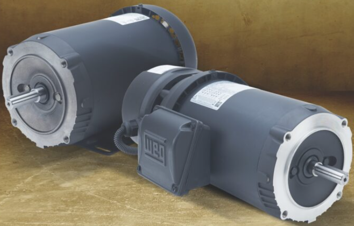 WEG brand motors add several general-purpose one- and three-phase motors from ¼ to three horsepower; certain high-performance inverter duty motors from ½ to one hp; motors certified for hazardous locations (Class I, Div 2, Groups A,B,C,D) up to three hp; and three-phase brake motors from ¼ to two hp. New motors come with a TEFC or TENV IP55 enclosure and offer speeds of 1,200, 1,800, or 3,600 RPM (depending on model). Brake motors come with a spring set, solenoid actuated AC brake with a manual brake release lever. All new WEG rolled steel motors come with an 18-month warranty.