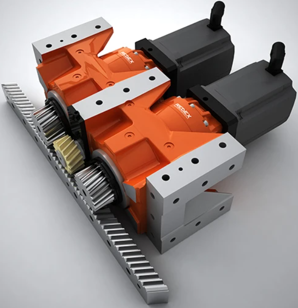 Redex SRP, DRP, KRP and KRPX Series rack and pinion reducers, together with DualDRIVE or TwinDRIVE technology, let machine designers create zero-backlash preloaded systems that achieve precise positioning and improved stiffness in CNC applications. These reducers feature optimized radial and torsional stiffness, very high linear accuracy, compact sizes and precision geometry for meshing with the rack. They can be implemented in the following ways: