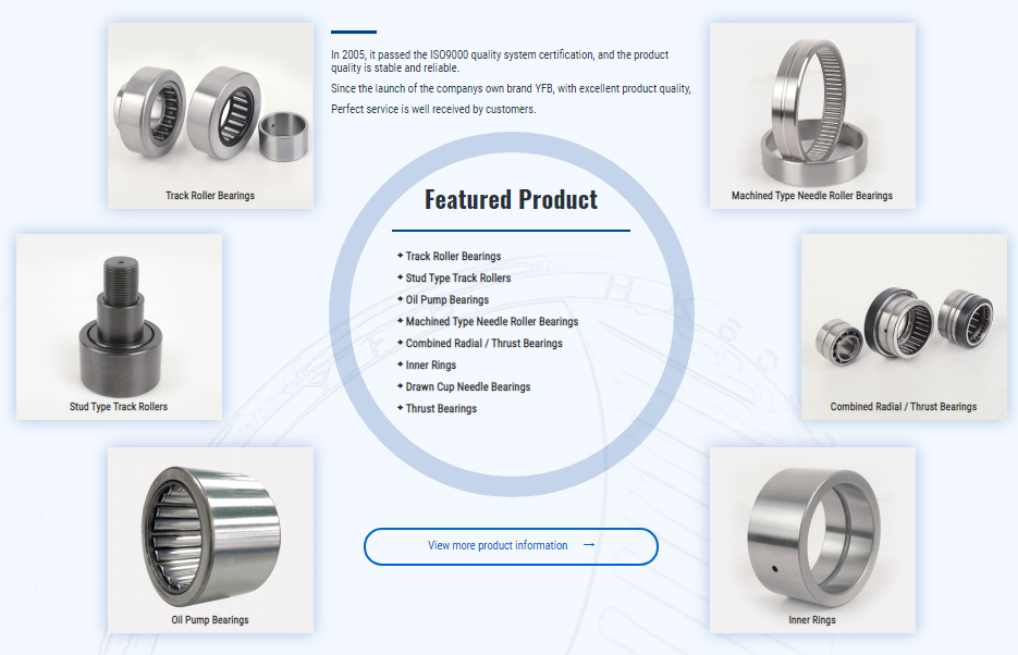 Main products: roller bearings, solid ferrule needle roller bearings, combined bearings, inner ring, drawn cup needle roller bearings, plane thrust needle roller bearings, needle roller cage assemblies and non-standard needle roller bearings, more than 3000 different specifications.
