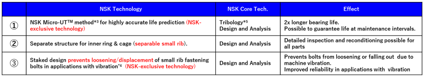 Highly accurate bearing life prediction through NSK’s Micro-UT testing delivers a high load capacity design and up to 2x longer bearing life