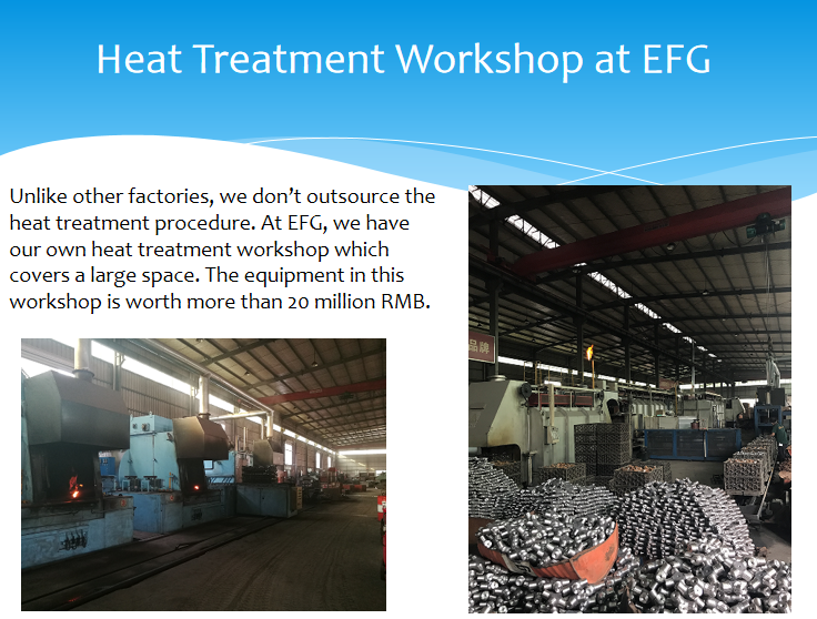 Unlike many others, we never outsource heat treatment. Our dedicated heat treatment workshop equipped with over 20 million RMB worth of machinery enhances the strength and wear resistance of every component.