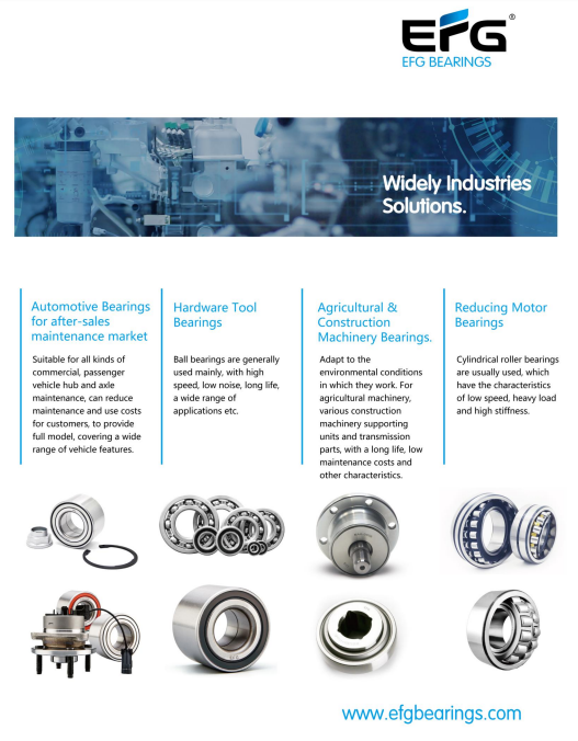 Keep your vehicles running smoothly with EFG Automotive Bearings designed for the after-sales maintenance market. Ideal for all types of commercial and passenger vehicle hubs and axles, EFG helps reduce maintenance costs while offering full-model coverage across a wide range of vehicles.
