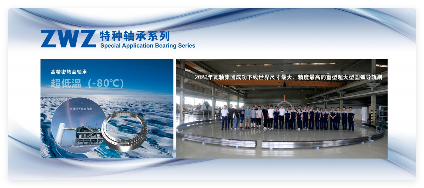 ZWZ owns two bearing brands, ZWZ and KRW. The company adopts international standards and can produce more than 20,000 specifications of bearing products in ten categories with various precision levels from 20mm inner diameter to 16m outer diameter, which are mainly used in industrial equipments, railway transportation, automotive vehicles, wind power and special applications.