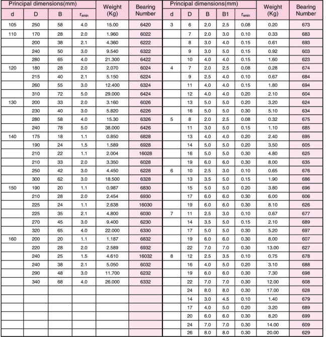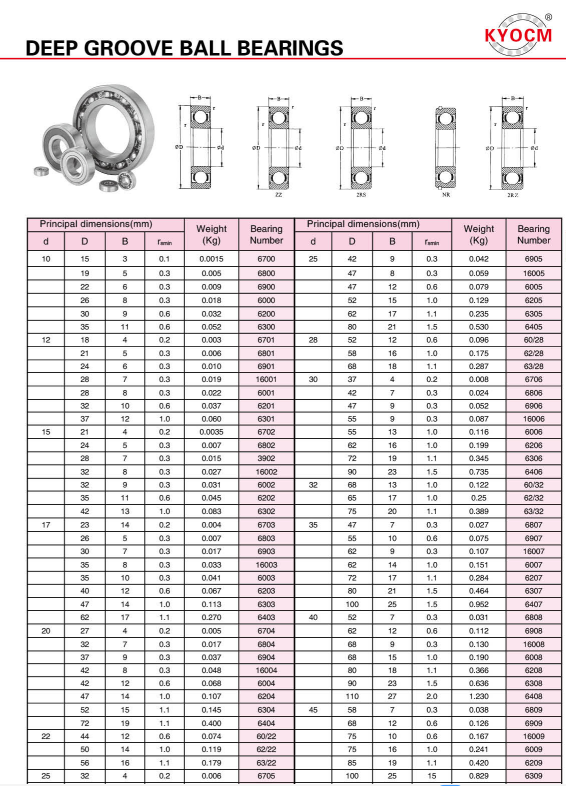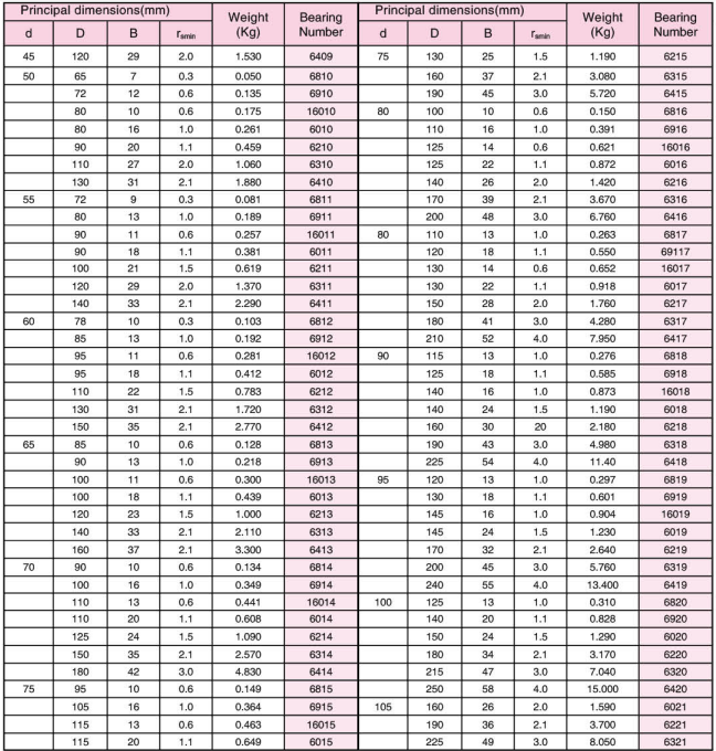 deep groove ball bearing catalog
