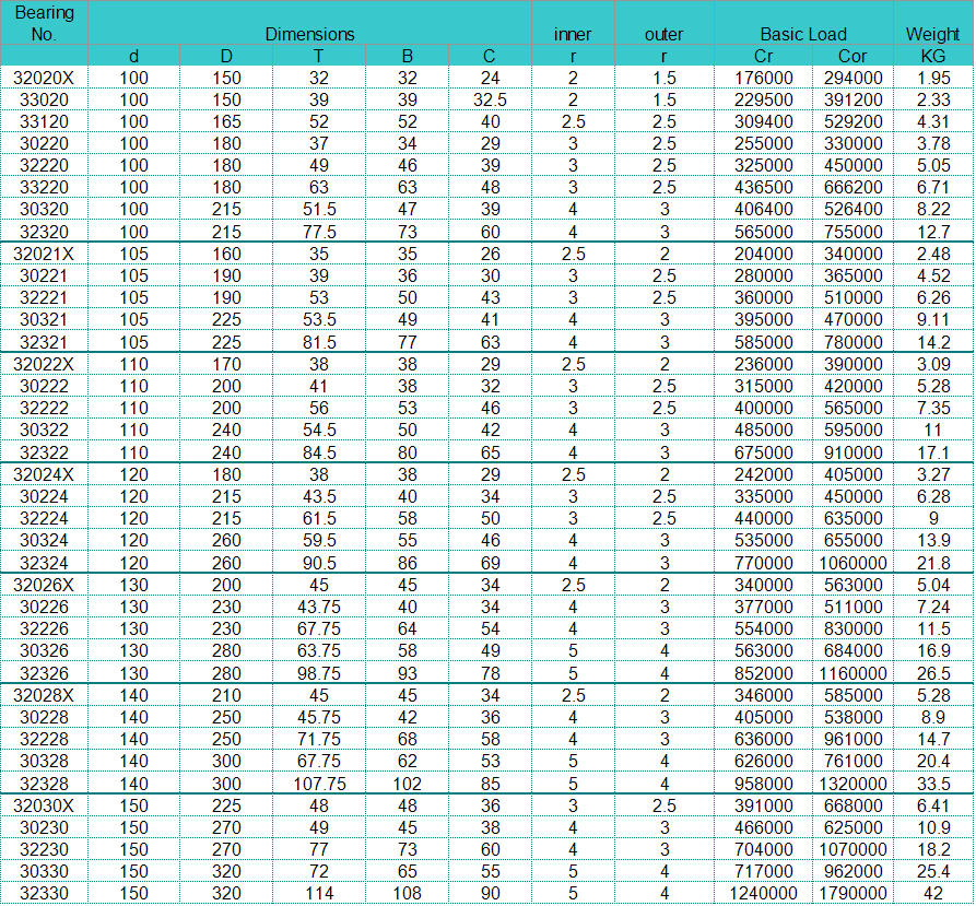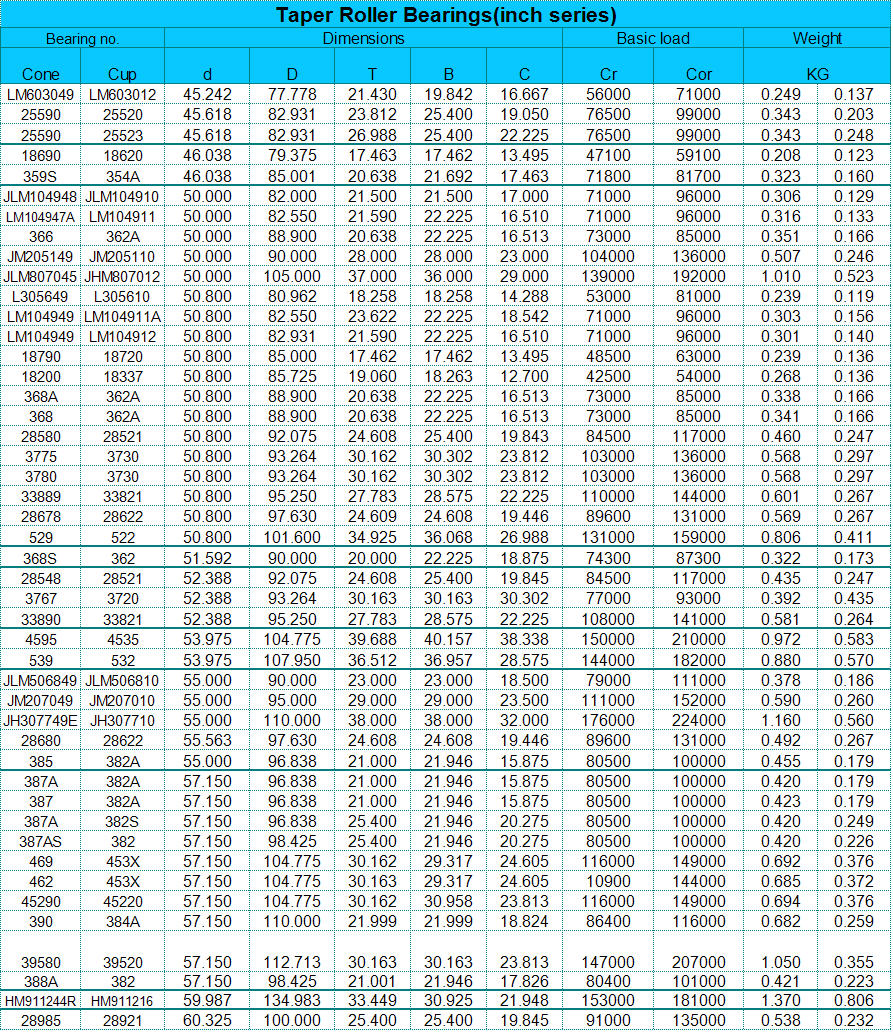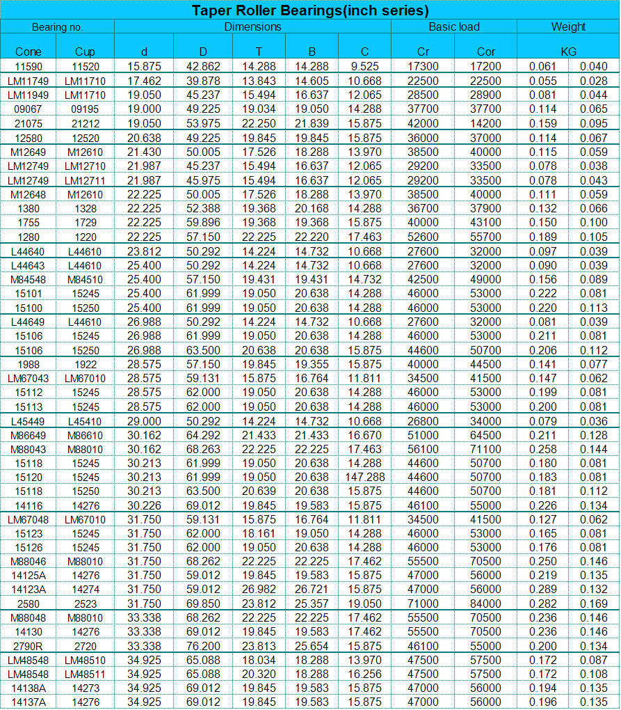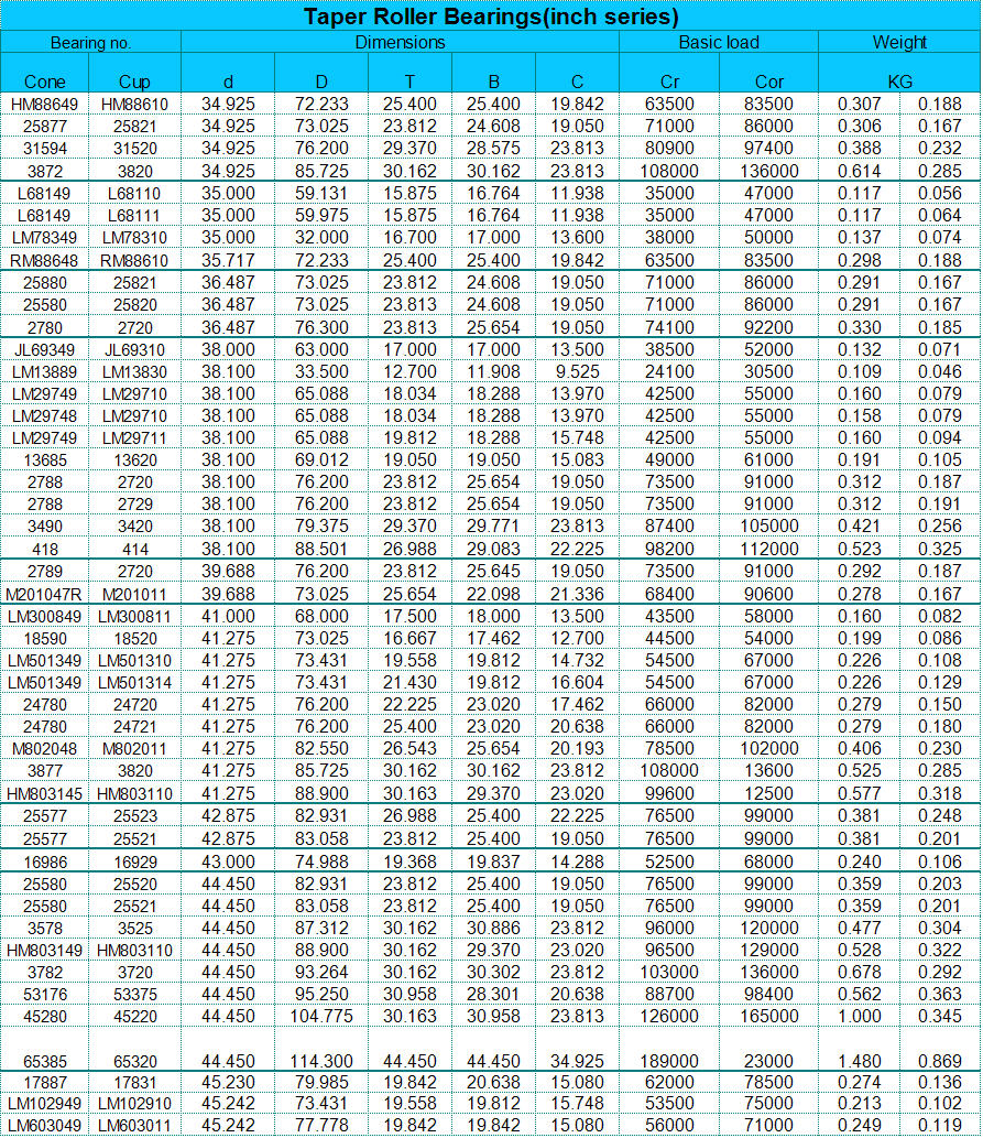 bearings, Tapered Roller Bearings (both inch system and metric system),