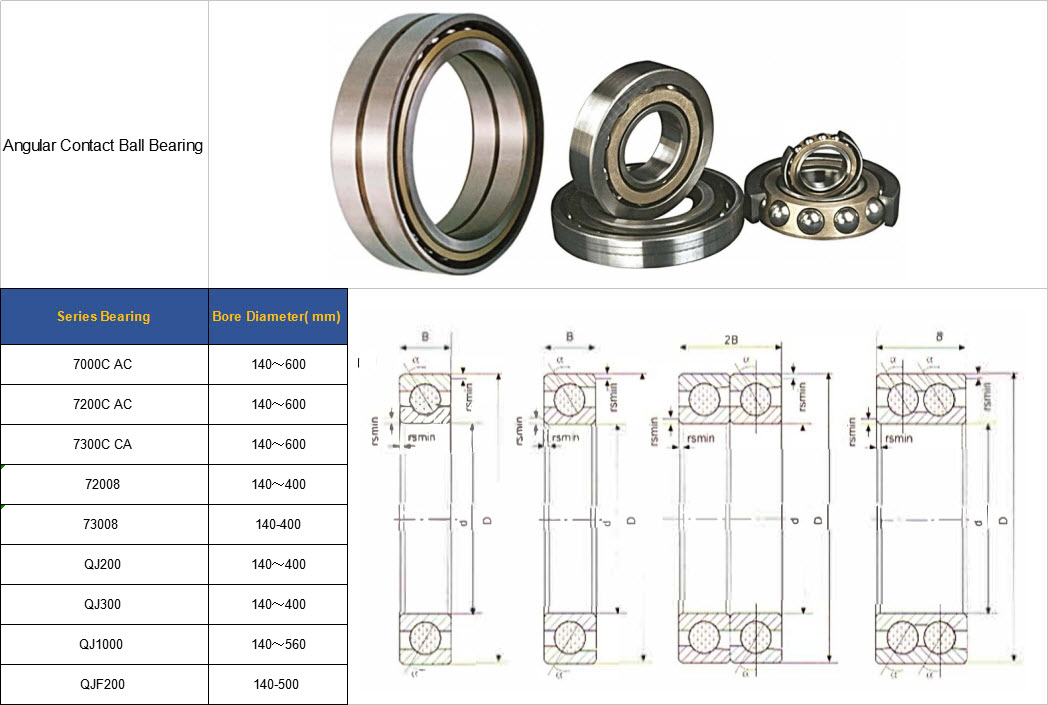 Angular Contact Ball Bearing,Spherical Roller thrust Bearing,Deep Groove Ball Bearing,Cylindrical Roller Bearing,Tapered Roller Bearing,Thrust ball Bearing