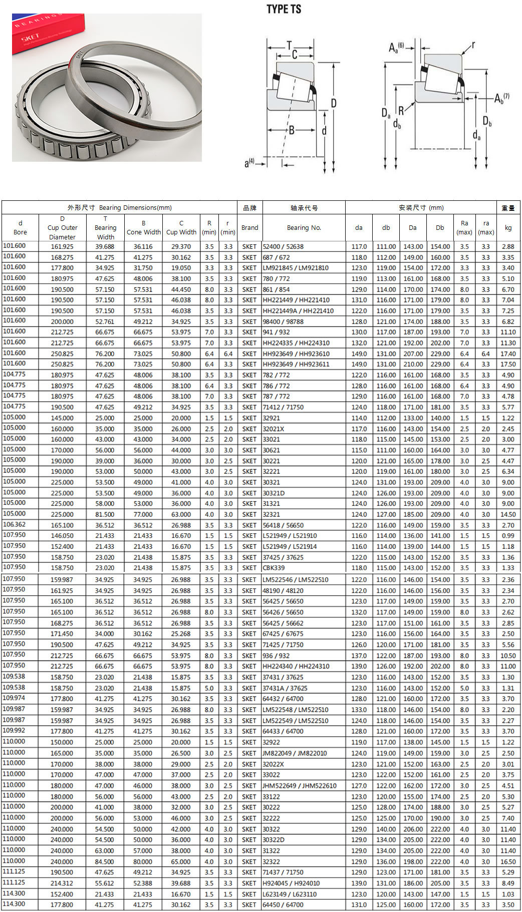 SKET® BEARING is a professional manufacturer and supplier of Tapered Roller Bearings, DAC Auto Wheel Hub Bearings, Kingpin Thrust Bearings in China.
