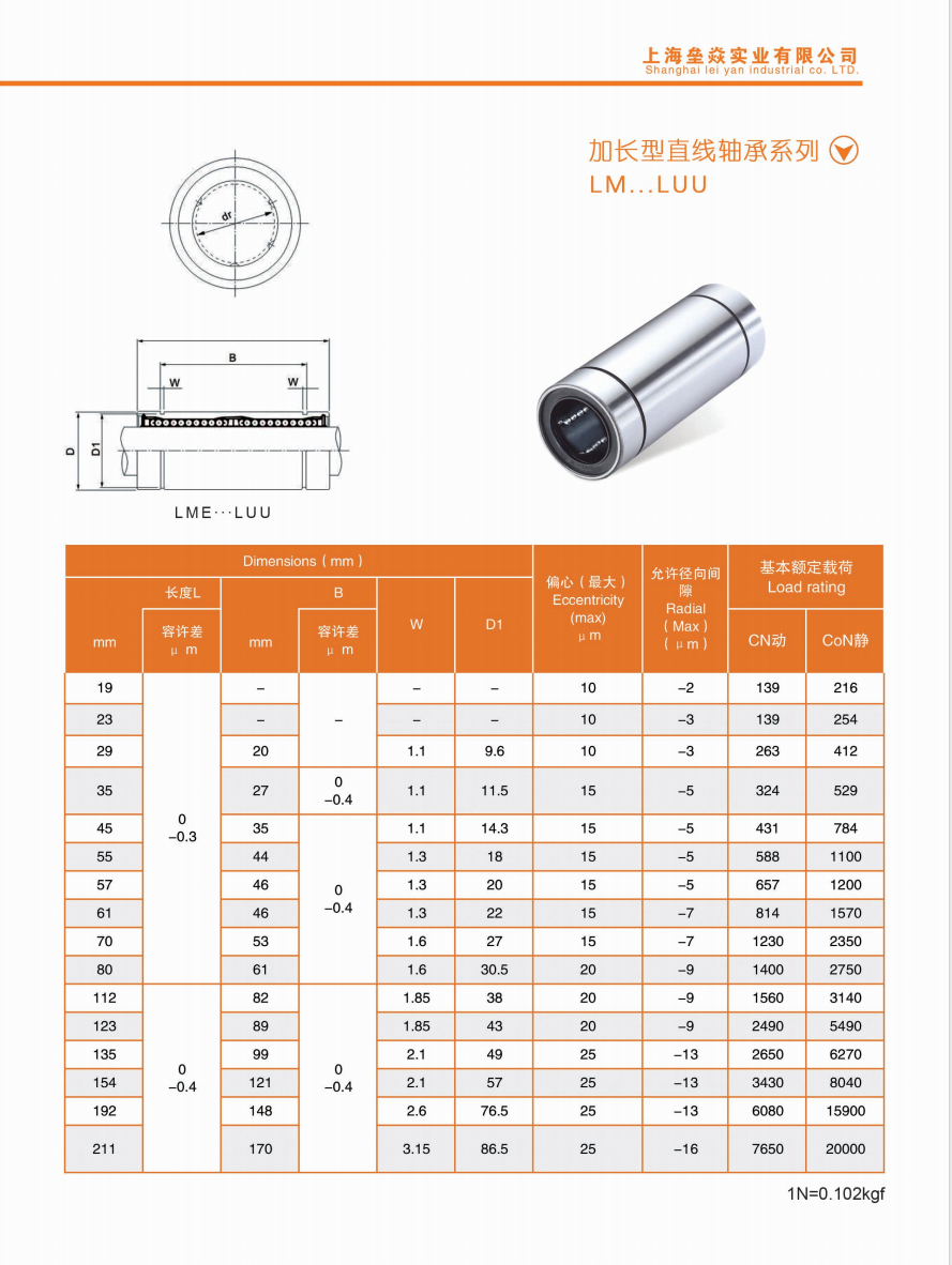 Shanghai Leiyan Industrial Co., Ltd. is a company specializing in the sale of linear bearings. It mainly deals in linear bearings, block guides, slider bearings, ball screws, needle roller bearings, rod end joint bearings, radial joint bearings and deep groove ball bearings, spherical roller bearings, tapered roller bearings, outer spherical bearings and other products.