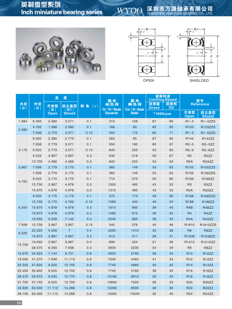 Shenzhen Wanyuan Bearing Co, Ltd. is a professional manufacturer of bearings, R & D and innovation as one of the enterprises. The company mainly produces diameter 1-50MM metric bearings, inch bearings, Spherical Roller Bearings, Cylindrical roller bearing,Angular contact bearings, Flange bearings,Rod end bearings and all kinds of non-standard bearings. |