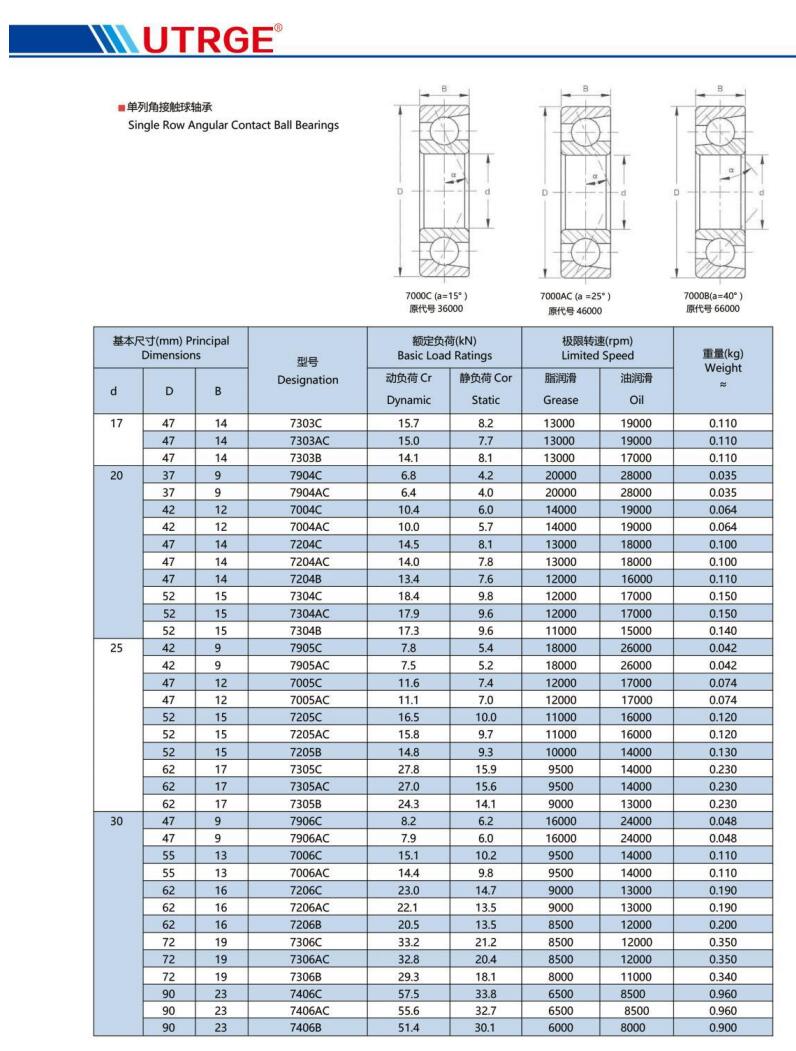 Hebei UTRGE Bearing Co.,Ltd. is a modern high-tech enterprise specializing in the production of precision angular contact ball bearings. Its main products are those with an outer diameter of 400mm or less, and are graded P0, P6, P5, and P4. These bearings are widely used in machine tool spindles, construction machinery, pumps, motors, textile machinery, petroleum, mining, metallurgy, centrifuges, gas turbines, differentials, high-frequency motors, and the automotive industry.