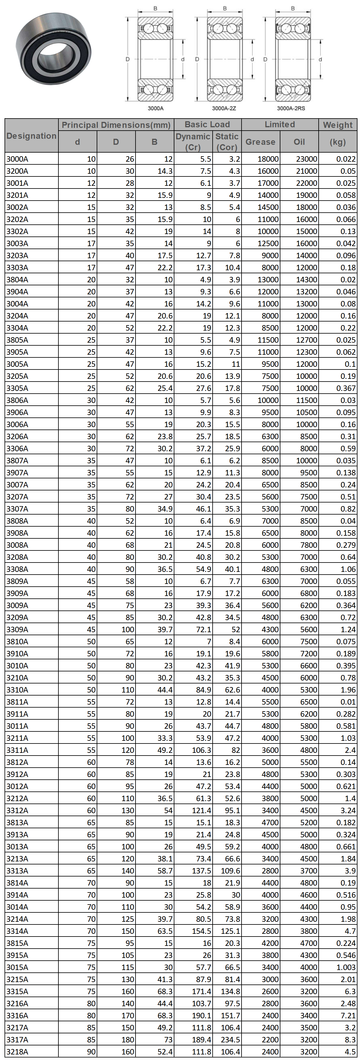 Angular Contact Ball Bearings(11) Self-Aligning Ball Bearings(3) Taper Roller Bearing(9) Thrust Spherical Roller Bearings (2) Thrust roller bearing(4) Deep Groove Ball Bearings(7) Cylindrical Roller Bearings(11) Spherical Roller Thrust Bearings(2)