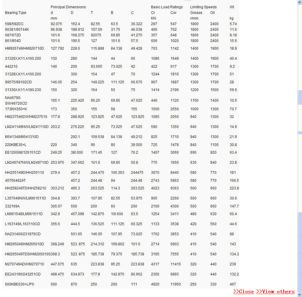 Needle Roller Bearing(26) Roller bearing(6) Combined Bearings(4) Wheel bearing(2) Cylindrical Roller Bearings(18) Self-Aligning Roller Bearing(5) Tapered Roller Bearing(6)