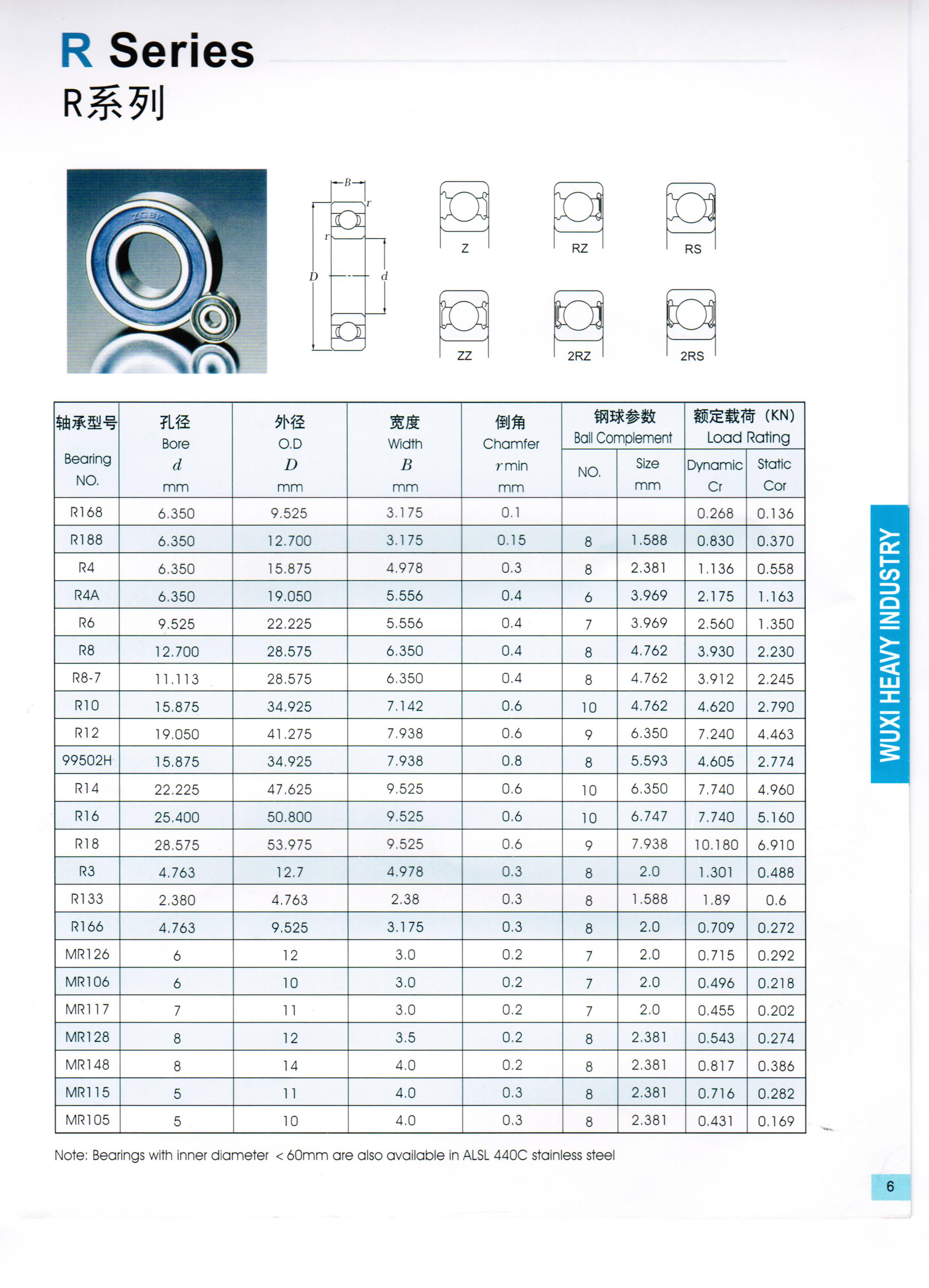 Wuxi Heavy Industry Micro-Bearing Factory is specializing in the production of micro and small deep groove ball bearing .With the strong technical force and many test equipment, the range of the production focus on 3-100mm metric and inch dimension. The bearing type include inch dimension S1600 series S16000 series SR series.the metric dimentsion S6000 series,S6200 series S6300 series,and the thin wall bearings S6800 series and S6900 series. Recently years we also develop the SUC series and self-aligning S1200 series. Our registered brand is ZGBK. Our stainless steel bearings also can be low vibration, low noise and high precision grade as the chrome steel bearings. As their unique nature, they can be used in the wide applicable environment like sea water, river water, distilled water and other corrosive medium. With the specially grease,they can be used with the temperature from -253℃ to 350℃。They are widely used in the medical machinery, chemical machinery, food machinery and other fields. Advanced equipment,powerful technical force,precise measurement and inspection methods ensure the stability of the quality.Our 90% products export to Europe,America,China Taiwan,Janpan and South-Korea. |