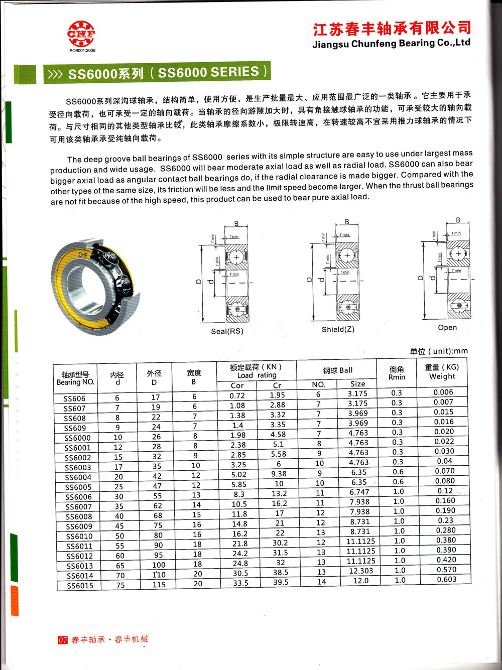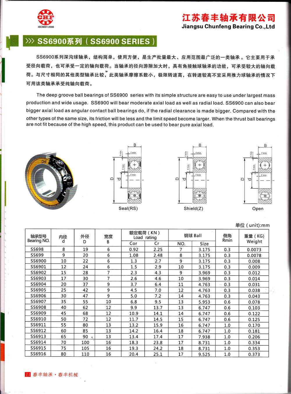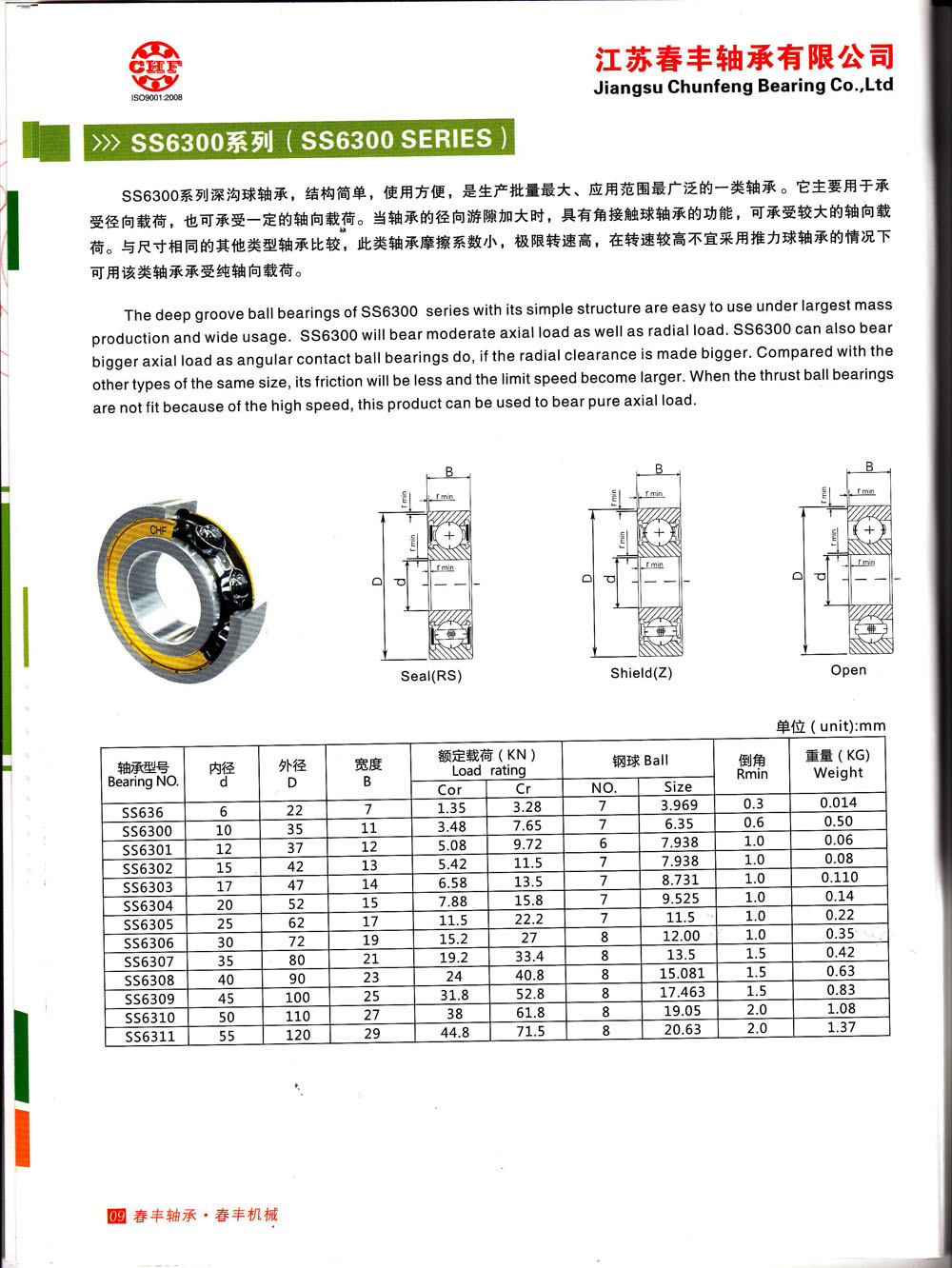 Jiangsu Chunfeng Bearing Co., Ltd. is a specialized manufacturer of stainless steel bearings and stainless steel rings, renowned in the industry for its "high quality and credibility." The factory covers an area of 12,000 square meters and employs over 300 skilled workers and technical specialists. With an annual production capacity of 15 million stainless steel bearings, it possesses integrated manufacturing capabilities including turning, heat treatment, grinding, assembly, and inspection. Our stainless steel bearings offer stable and reliable quality, with precision levels meeting ABEC-1 and ABEC-3 standards, and vibration levels achieving Z2, Z3, and Z4 groups. The factory is certified with the ISO 9001:2015 quality management system and is equipped with advanced manufacturing facilities, strong technical expertise, precision measurement instruments, and a comprehensive quality assurance system. We are committed to providing customers with superior products and excellent service.