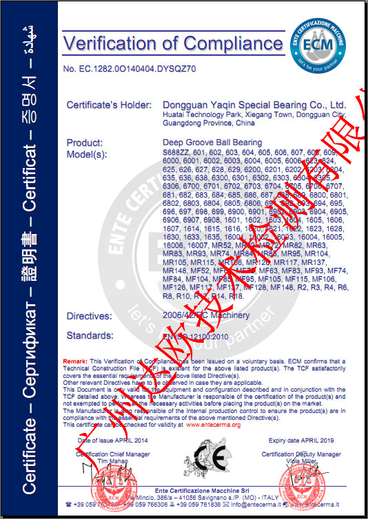 Yaqin Special Bearing Co.,Ltd nbsp;passed CE certification in 2014