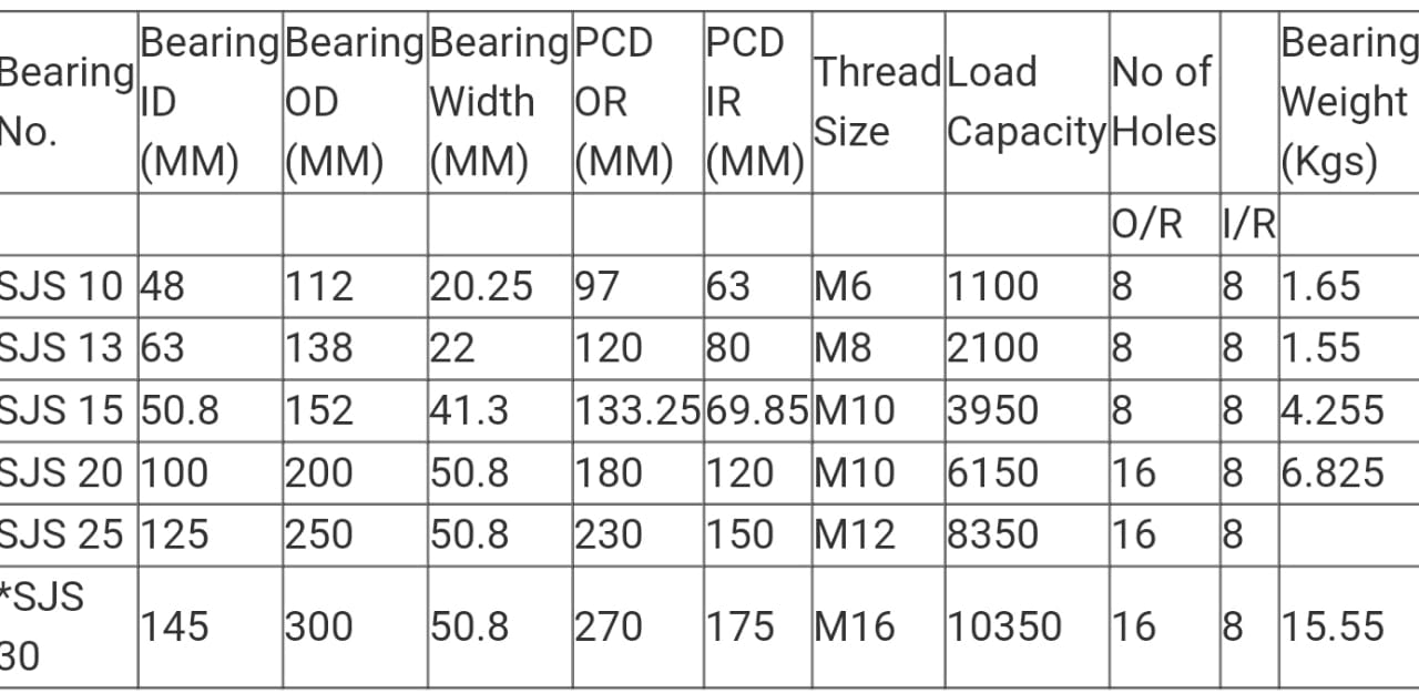 Demand slew ring bearing SJS 10, SJS 15, SJS 20, SJS 25, SJS 30