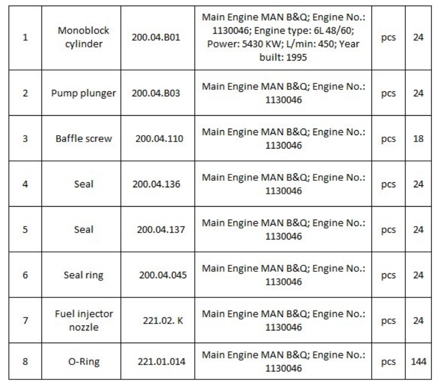 WANTED: MAN 6L48/60 parts: SEAL RING, MONOBLOCK CYLINER,