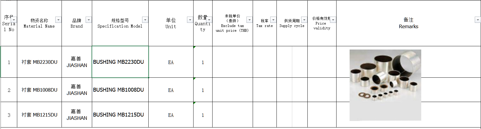 Demand Bushing MB2230DU-1PC. MB1008DU-1PC. MB1215DU-1PC.